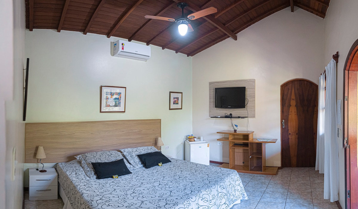 Fornecemos Itens de cama e banho. Nossa cozinha conta com: Talheres, pratos, panelas, copos, xícaras, tábuas para frios e carnes, além de líquidificador, Air Fryer, aparelho de fondue, geladeira e cooktop. Temos também projetor para assistir suas séries e filmes preferidos, com Wi-Fi para você ficar sempre conectado. Café da manhã incluso: Uma deliciosa bandeja de café da manhã, preparada com carinho para começar o dia com muito sabor e energia. Disponibilizamos tapete de yoga.