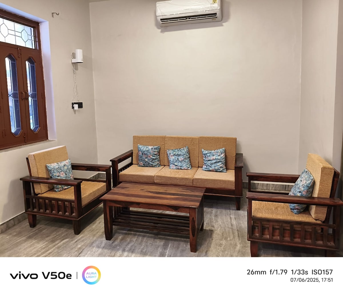 This spacious 3BHK Airbnb offers a perfect blend of modern comfort and style. The expansive living hall is ideal for relaxation while the sleek dining area ensures enjoyable meals. The kitchen makes cooking a breeze. The cozy garden provides a peaceful outdoor retreat. Unwind on the verandah or enjoy Netflix on the 65-inch LED TV. With ample space & thoughtful amenities, this contemporary home is perfect for families or groups seeking a stylish, convenient stay with a touch of luxury & comfort.
