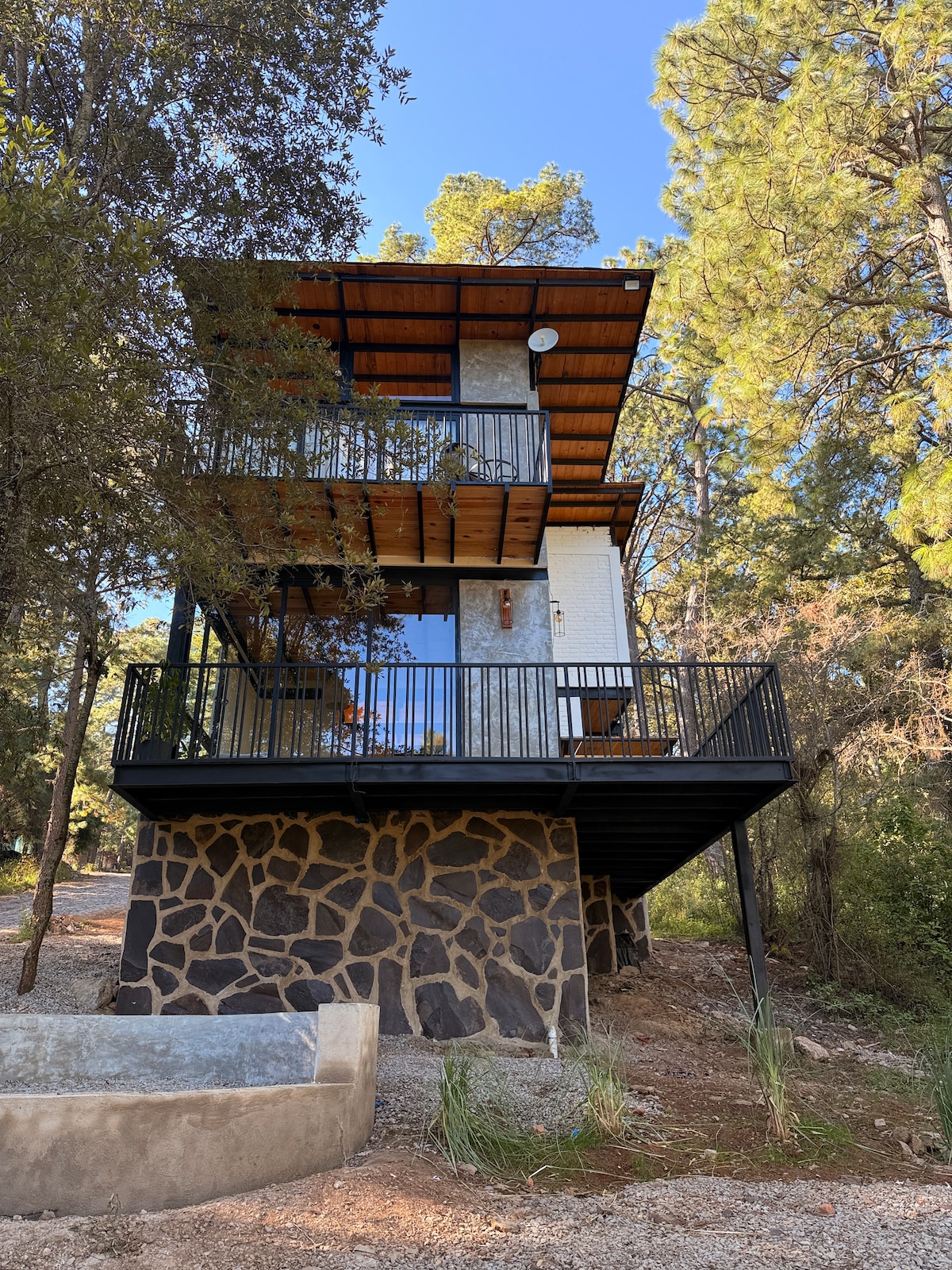 Esta parte del bosque se caracteriza por sus grandes árboles, aves, ardillas, conejos y noches estrelladas que, en compañía de fogatas y buena vibra, lo hacen un gran lugar para conectar contigo mismo. Podrás disfrutar de una cabaña de piedra al estilo toscano, con todas las comodidades que la vuelven muy acogedora. Seguridad 24hrs. Perfecta para planes románticos, de descanso o para quien busca trabajar fuera de la rutina. A 15 minutos del centro de Tapalpa.