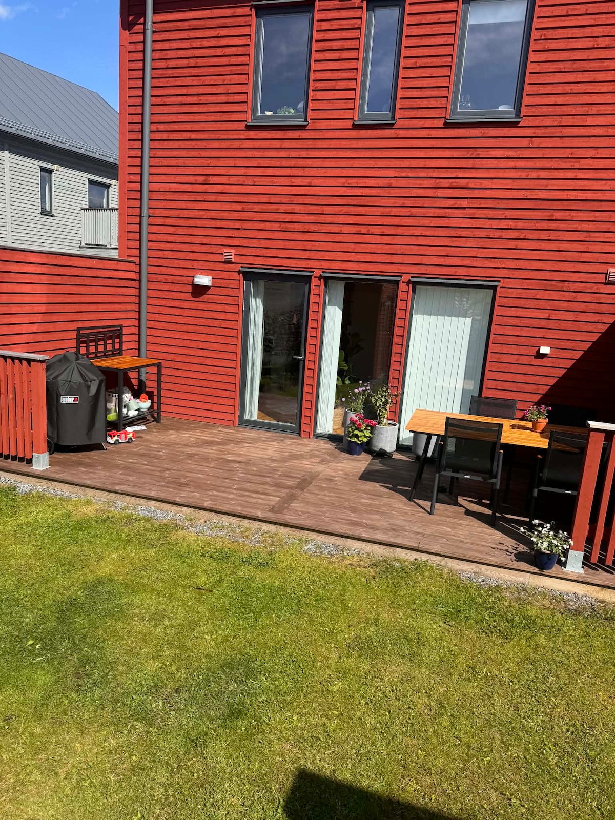 Modernt boende mitt i staden! Promenadavstånd till Östersunds centrum samt till skidstadion, Östersunds arena och Jämtkraft arena. Även nära matvaruaffär. Egen trädgård med stor altan i söderläge. Barnvänligt med tillgång till studsmatta, rutchkana, sandlåda och leksaker. Fyra sovrum, ett med dubbelsäng samt tre med enkelsängar, därtill två madrasser att sova på. Fräscht och användarvänligt kök. Två helkaklade badrum varav ett rymmer ett skönt badkar.