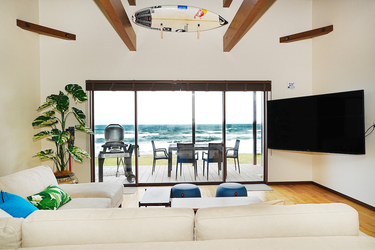 ビーチ前の源泉かけ流し温泉つき貸切別荘|窓一面の海景色|BBQ|駅徒歩12分|コンビニ徒歩2分