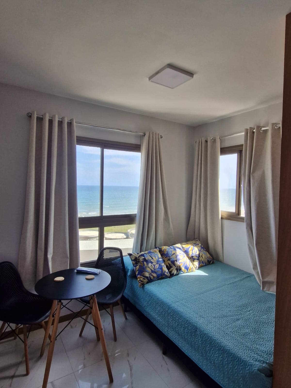 Relaxe ! Flat Silencioso! Aconchegante ! Climatizado! Som do mar canto dos pássaros ao nascer do sol! Vista Mar privilegiada! Estacionamento Privativo ! Flat recém reformado : - 2 banheiros, suíte com Ar - Cafeteira aifler microondas gril máquina lavar roupa ... - Sala c/ Ar TV Smart sofá cama mesa ... - Ar condicionado ventilador, internet de alta velocidade pra home office _Térreo do flat Restaurantes Padaria salão de beleza... - Bike Itaú ,divãs massagem quiosque orla frente flat !