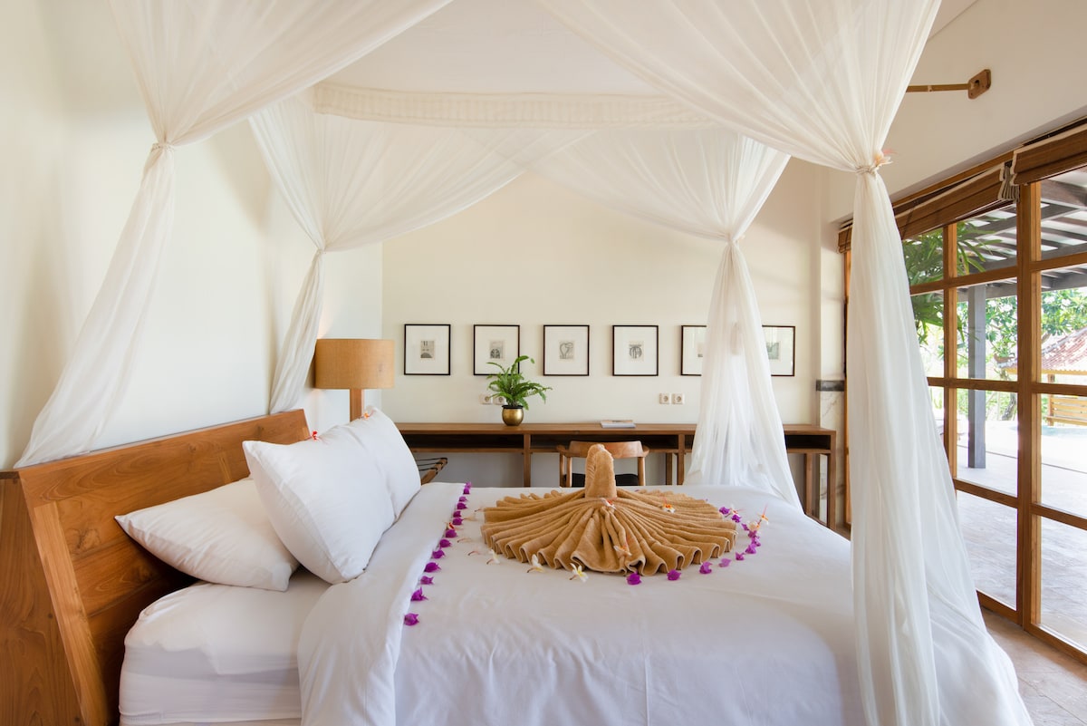Villa L'espoir - 崭新的位于宁静的巴厘岛北部的豪华全海景别墅 顾名思义,这座别墅正如她的名字《期望》一样能满足你所有的期待和愿望。它位于令人惊叹的美景之中,她就在绿色葡萄园,稻田与海洋相遇的地方。从建筑开始的那一天起,从选址到设计到装饰,它承载着我所有的期许和梦想,一年后我已经无法说我的梦想成了真,因为她比梦想中的天堂更加美丽。希望你们也能和我一样,在这里享受到完全的平和和放松。希望Villa L'espoir也能满足你们所有的期待。ENJOY YOUR STAY.