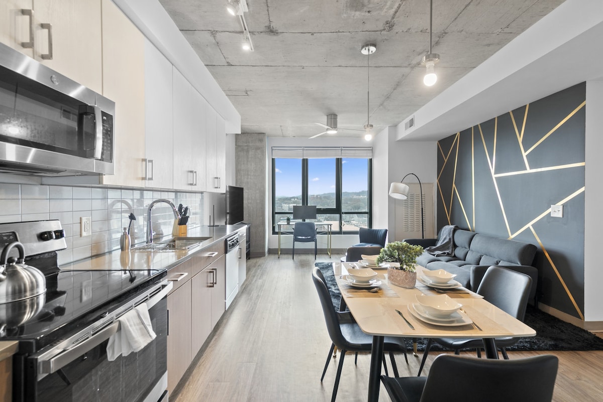Unwind in this chic 2-bedroom condo at the heart of downtown Birmingham. Floor-to-ceiling windows fill the space with natural light and showcase sweeping city views. The open-concept living area invites you to relax with plush seating, a smart TV, and a sleek, fully equipped kitchen. Each bedroom offers a cozy retreat, while the modern bathroom adds a touch of spa-like comfort. With high-speed Wi-Fi and top dining, shopping, and attractions just steps away, your perfect city escape awaits.