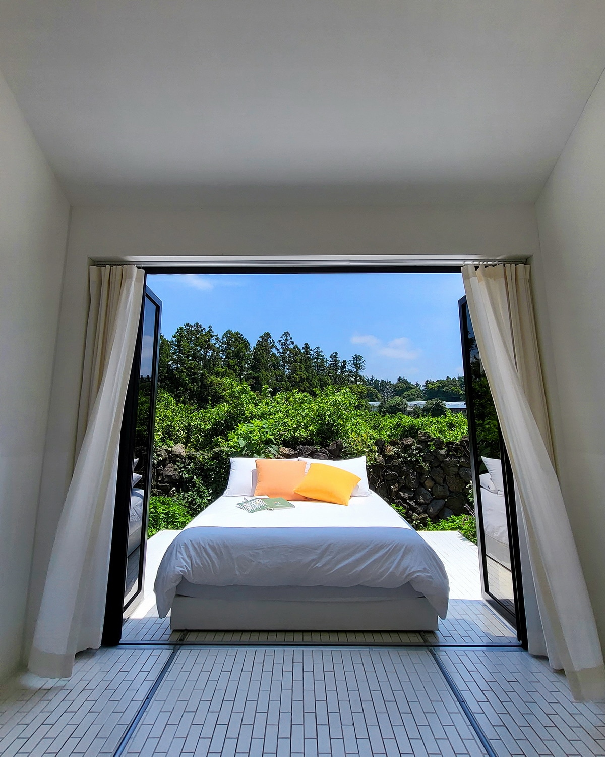 제주 송당 무끈모루숲 안에 위치한 단독형 숙박시설입니다. 나홀로 고독을 즐기거나 연인이나 친한 친구와 온전한 고립을 즐기기에 좋습니다. 숙소 내 외부 시설은 자연과 잘 어울리면서도 매우 현대적입니다. 양쪽 측면이 통유리로 자연을 조망하기 좋습니다. 또한 숙소 밖에는 깊은 숲으로 통하는 숲길이 조성되어 있습니다. 각종 주방기기, 냉장고, 세탁기, 야외 바베큐, 인터넷 등 편의 시설이 충실합니다. 다만 TV는 제공하지 않습니다. 무엇보다 축구장 3개 크기의 무끈모루숲을 이용 가능하다는 것입니다. 그리고 투숙객에게 상시 인터포레스트 카페 전 메뉴를 20% 할인된 가격으로 제공합니다. 참고로 숙소가 도로와 연결된 숲 입구에 위치하고 있어서 깊은 산속의 산장의 이미지는 아닙니다.