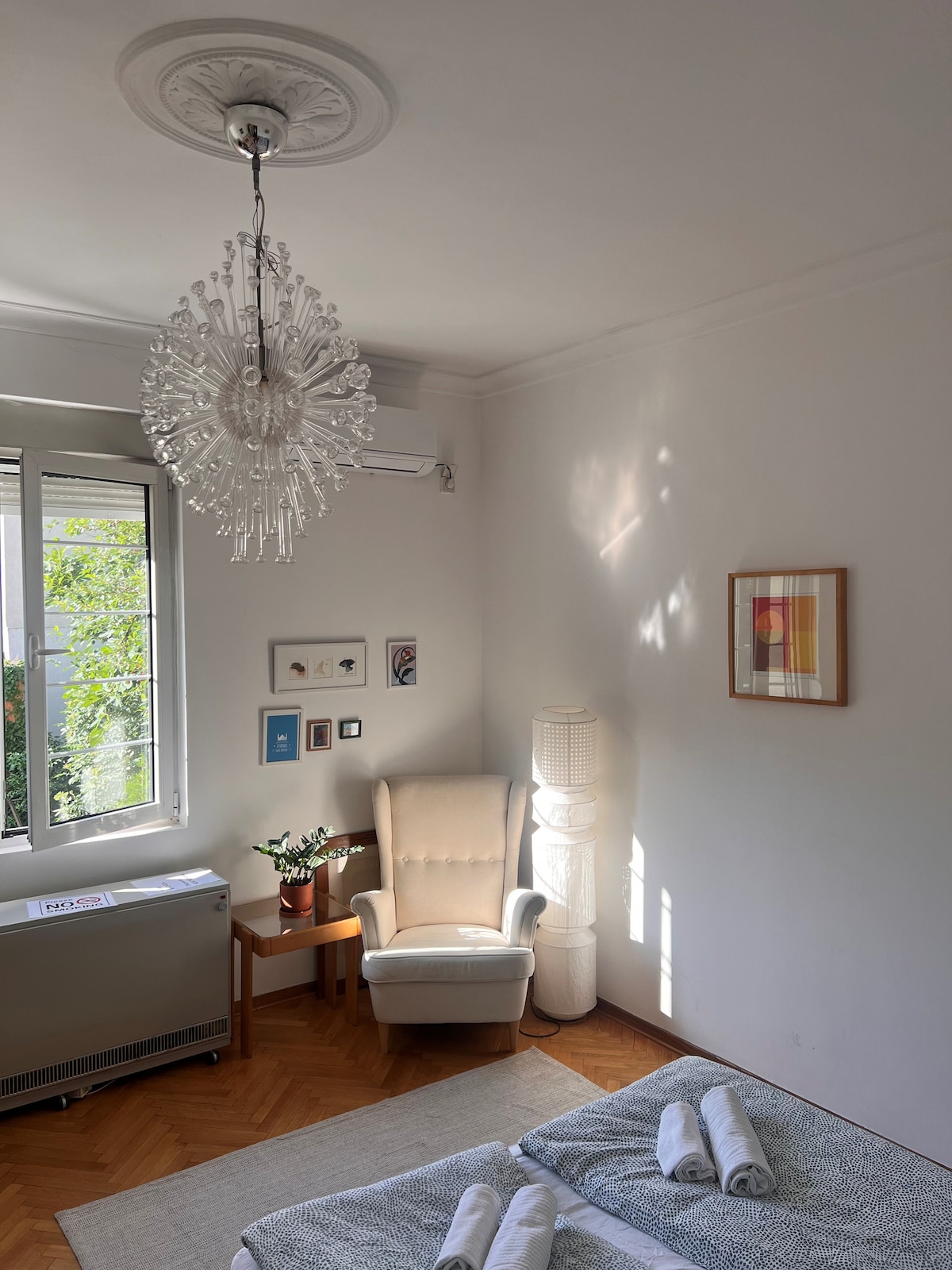 Enjoy peaceful mornings with a rare view over Belgrade’s Botanical Garden. This stylish and quiet apartment with high ceilings, fast Wi-Fi, and air conditioning is perfect for couples, solo travelers, or small families looking for comfort and character in the city center. Located on Palmotićeva Street, just a short walk from Republic Square, Skadarlija, and the best cafes and museums — while offering tranquility and greenery just outside your window.