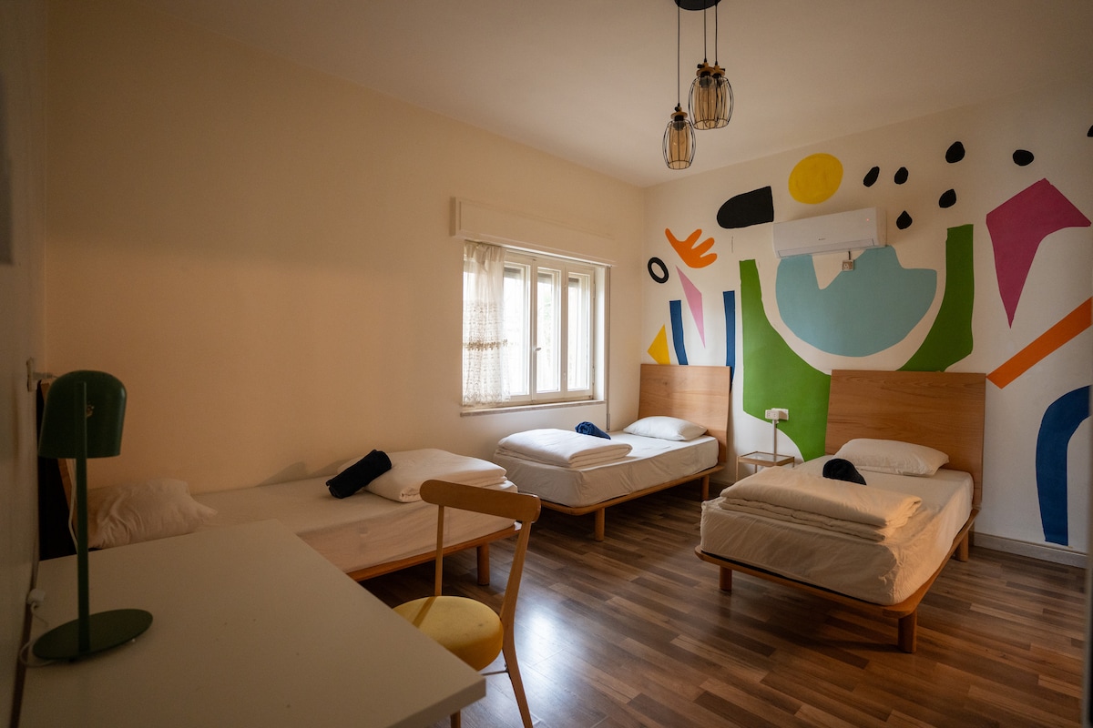 旅舍内迷人的三人卧室
