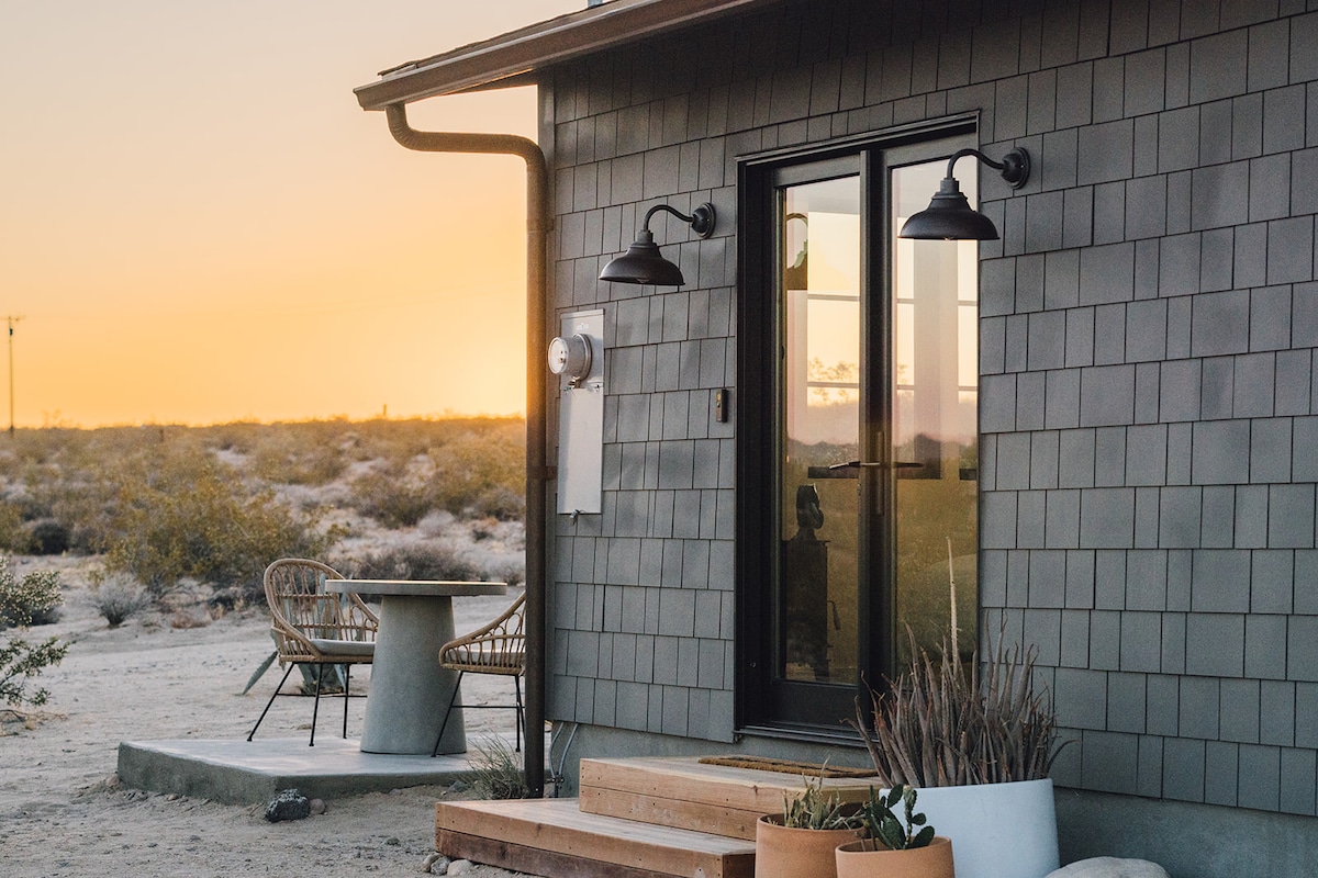 Welcome to Elko House, a tiny modernist escape in the heart of Joshua Tree! Tucked away in a private lot filled with Joshua trees and cacti, this luxury Tiny House is the perfect retreat. Relax, unwind, and enjoy the spectacular mountain views, sunsets, and starry skies right from the hot tub. Cozy up by the fire pit under the stars on a cool desert night. Feel one with nature while benefitting from modern amenities! Only a 3 minute drive to town and a 10 minute drive to the main park entrance.