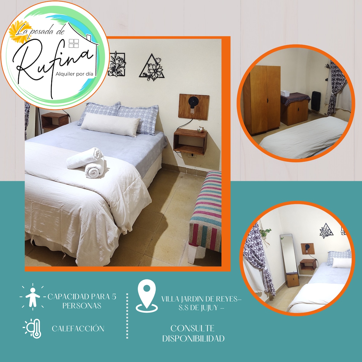 Es una cabaña amplia para cinco persona cuenta con una cama matrimonial y tres camas de una plaza y media con un baño con ducha agua caliente por termotanque solar una cocina pequeña una heladera bacha y una pileta pequeña para lavar ropa si lo desea en el dormitorio mas amplio se encuentra las camas de una plaza y en dormitorio mas pequeño la cama matrimonial donde también se encuentra una s ventanas amplia donde se puede ver el paisaje del pucara cuenta con un asador y una mesa