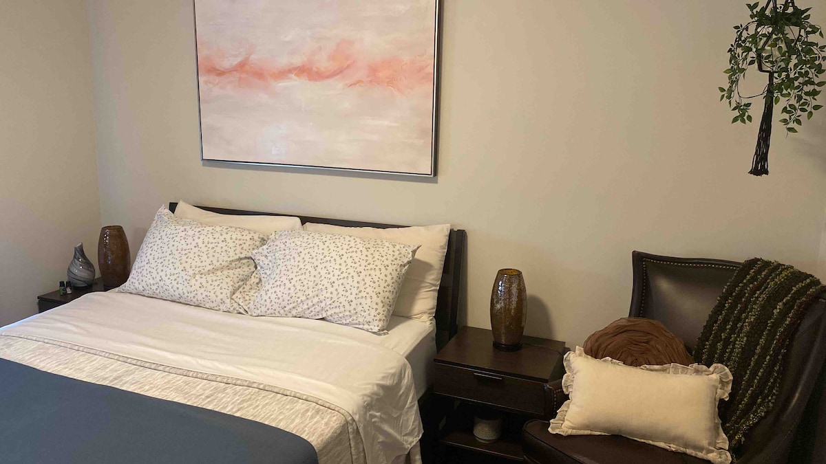 舒适的地下室套房,配备1张床、无线网络和Neflix