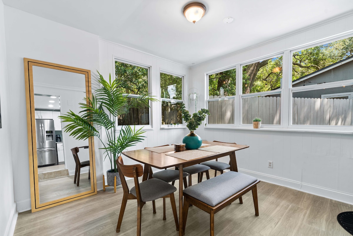 Whether you’re planning a quick getaway, work trip, or extended stay, this calm, stylish retreat has you covered. Tucked on a quiet, tree-lined street, the lush canopy creates a cool, inviting backyard perfect for relaxing. Enjoy peaceful surroundings at home while staying centrally located near Jacksonville’s top attractions, with restaurants and shops just a short walk away.