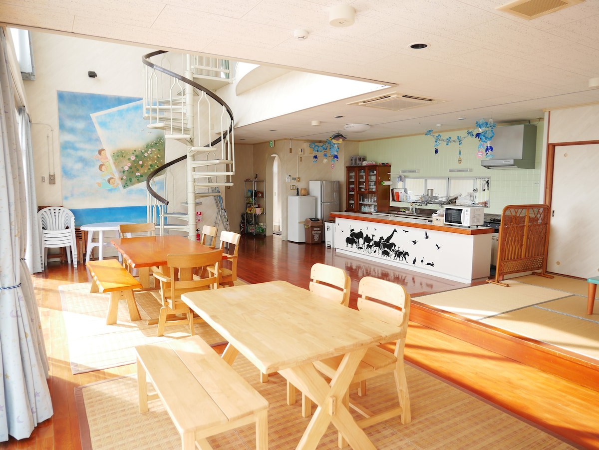 2階建ての広い建物を1棟まるまる貸切り。 目の前は真っ白な砂浜と真っ青な海。 シュノーケリングだけで、カメに遭遇する事も。 昼は美しい海、夜は満天の星空とさざ波の音を聞きながら、のんびりとお過ごしください。 寝室は全室シーリングファン付き。 海で泳いだら、そのままシャワー室に入れます。 ベッド8台、9名様以上は畳かフローリングでマット使用。 洗濯機あり。 三世代ファミリーやグループ旅行に最適。 ごゆっくりして頂くため、棟内へは立ち入りません。連泊される場合は、掃除・シーツ交換等も行いませんので、お客様自身にてお願いします。 築30年余りの建物の為、古さを感じる事もあります。ご了承ください。 近隣に民家や宿泊所等がありますので、パーティーや宿泊者以外の立ち入りはご遠慮ください。 奄美大島は自然が遺産です。 ビーチでの飲食、花火やBBQの後処理はしっかりしてください。 打ち上げ花火は禁止。 浜を汚さないようお願いします。 宿も綺麗に使って頂ければ幸いです。