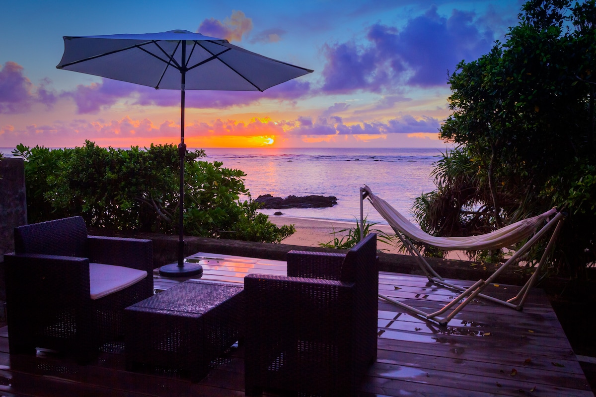 テラスから歩いて10秒で、広々としたビーチをひとりじめできる宿。 目の前に広がる水平線から昇る朝陽や、頭上いっぱいに広がる満点の星空は、ここでしか味わえない特別な景色です。 奄美大島最北端の静かな場所に位置するこの宿では、何もせずにのんびりすることが一番の贅沢な過ごし方です。 島の食材を買って自炊をしたり、海に面したテラスでハンモックに横たわったり、時間を気にせず泳いだり。 奄美の魚たちと戯れたい方は、シュノーケルもおすすめ。 ビーチから戻ってすぐに体を洗える屋外温水シャワーも用意しています。
