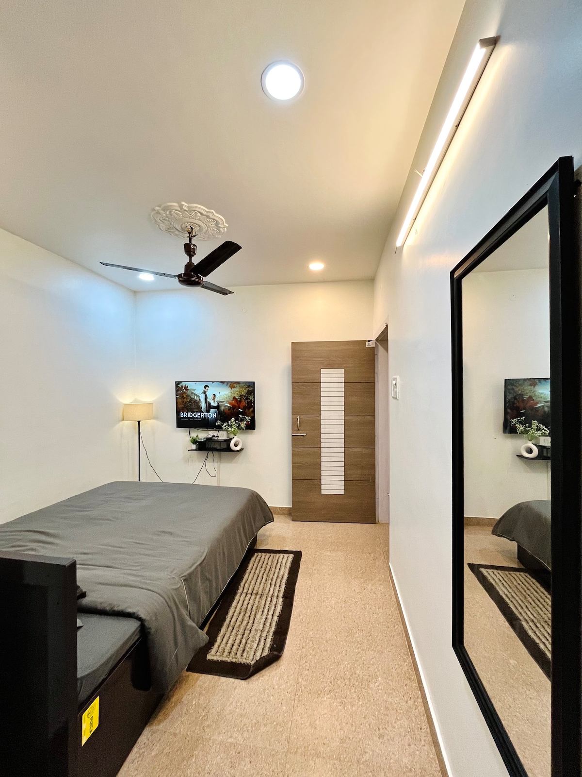 Welcome to Serenity! This charming 1BHK is nestled in a beautiful residential area, offering the perfect blend of comfort and tranquility. It is situated on 1st Floor (No Lift). Whether you're a solo traveler or with family or business guest, you'll love the peaceful ambiance, interiors, and convenient location. Relax in a cozy living space, enjoy a fully equipped kitchen, and unwind in a comfortable bedroom - experience a home away from home!
