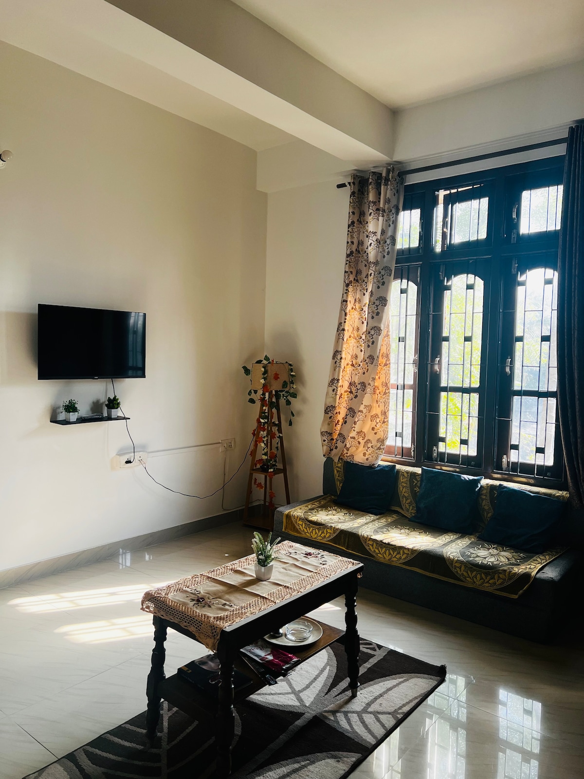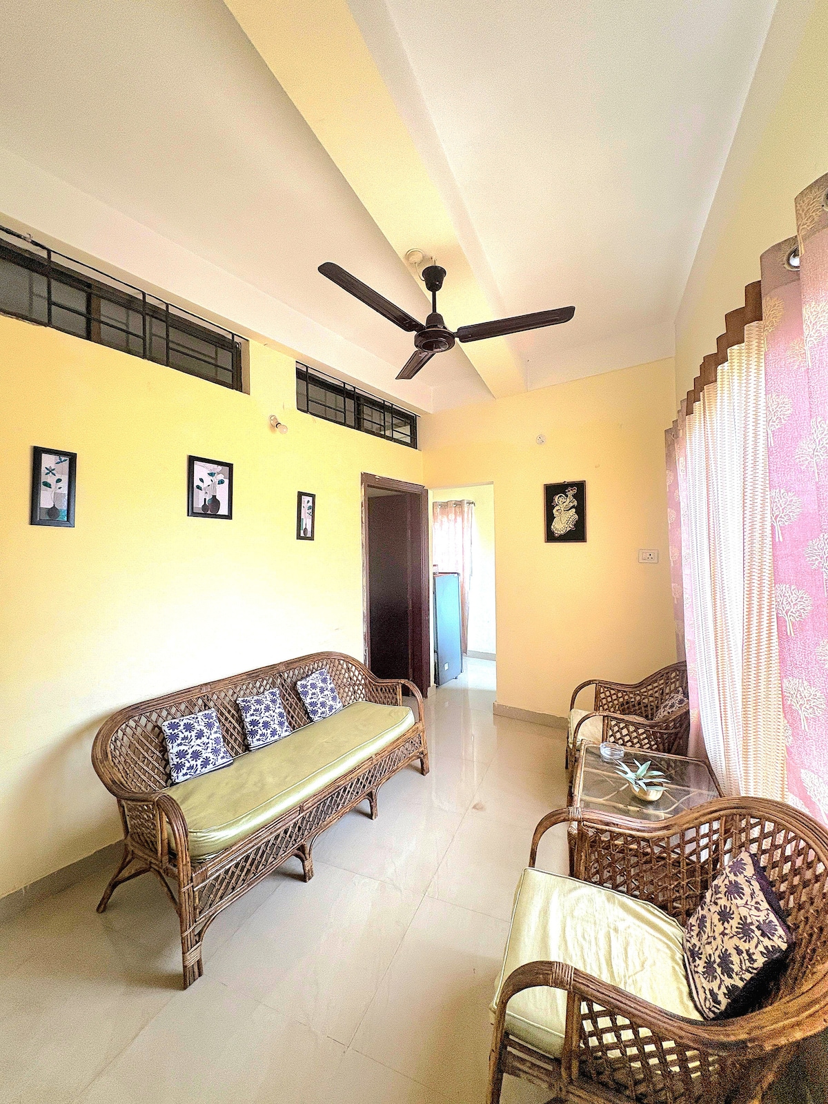 A peacefull and unique place that will make you feel therapeutic. This place is full of love equipped with all the amenities for your comfort. No loud parties and No Loud music after 10pm. Enough for 4-5 people. AMENITIES: -Ground Floor with wheelchair access -Android Project with 8ft*6ft screen (OTTs) -Free WiFi -AC -Fridge -Chimney -Geyser -8 inch soft mattresses -Convertible Sofa-Bed -Gaming Area with Carrom, UNO, Chess etc -Equipped Kitchen -Housekeeping and Caretaker in campus.