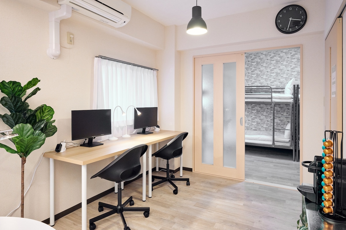 最大入住4人,适合家庭。难波市中心,机场直达,难波站5分钟公寓式民宿,心斋桥难波,黑门市场皆可步行。