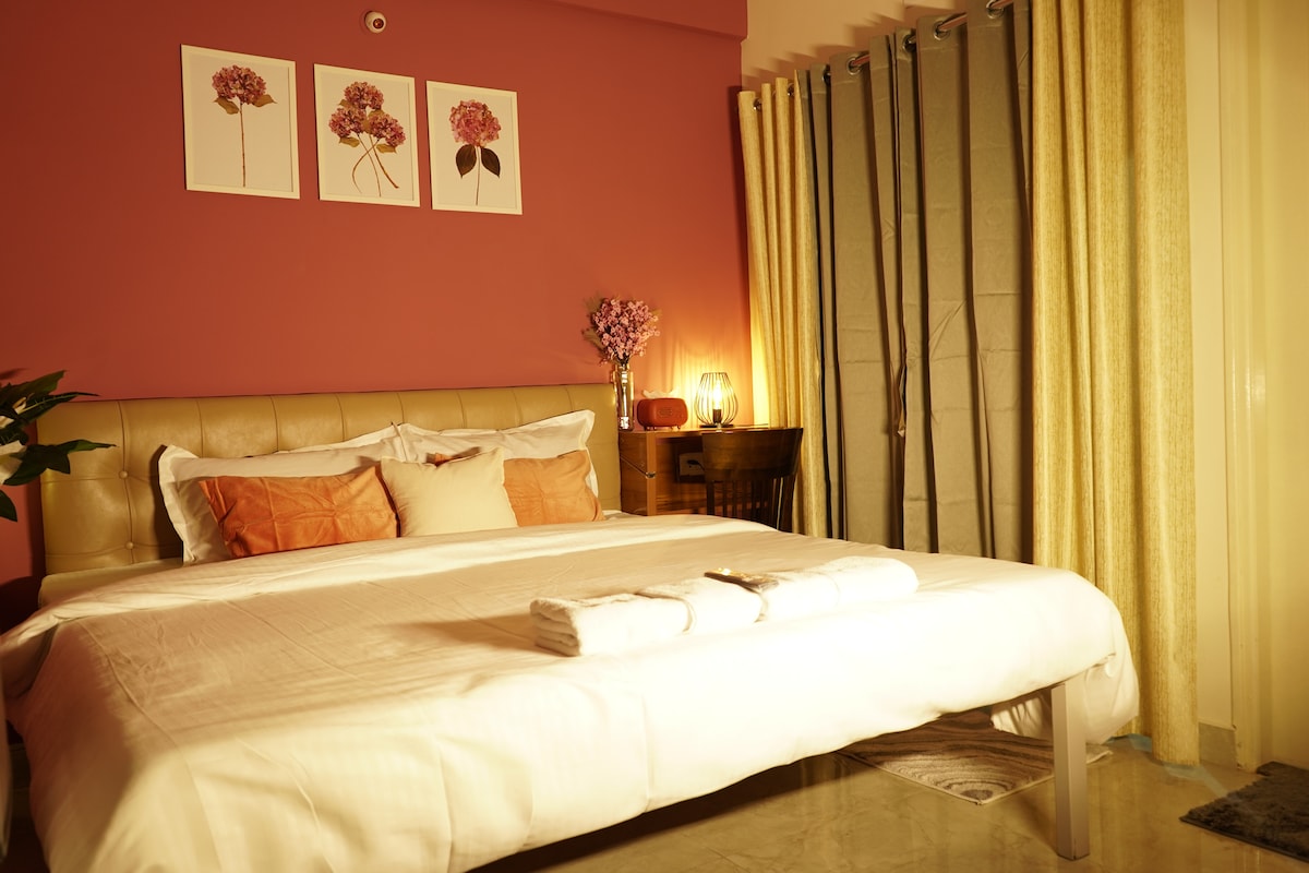 Welcome to our cozy & spacious 2 BHK Lakeview apartment! Enjoy the tranquillity of this quiet retreat equipped with an AC (in one bedroom) for comfort. Stream seamlessly with up to 100mbps WiFi, and conveniently park your car hassle-free. Savour complimentary tea and coffee as you unwind on premium mattresses dressed in quality linens. We've got you covered with provided shampoo and body gel for a worry-free stay. Experience comfort and convenience at its best!
