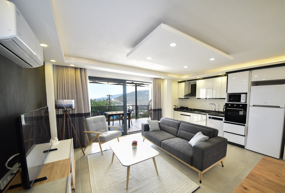 Kaş Güzey 公寓 3+1, 5 张床, 自然和海景