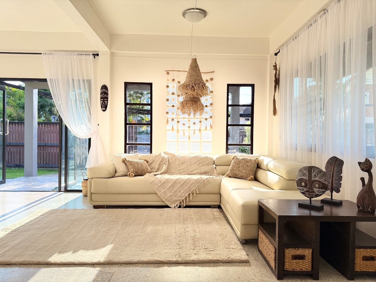 Nestled between mountains and sea in Phuket, this villa mixes Thai style and modern comfort for families and groups. 4 bedrooms, 4 bathrooms, 2 jacuzzis, sleeps up to 10. Private pool for day swims and quiet nights. Kids’ playground with slides and swings. 35 sqm living room, open kitchen and villa-view terrace for gatherings and BBQ. Quiet, close to beaches( 800m away), markets and attractions. Your home away from home in Phuket for family holidays and group retreats.