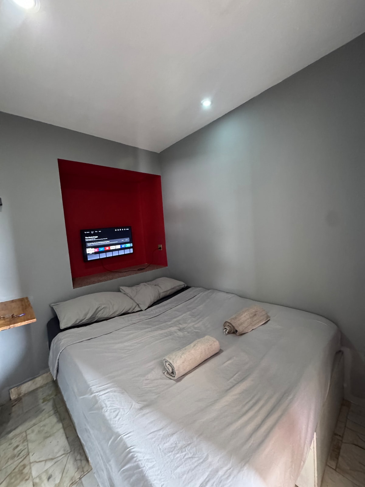 Our smallest but most affordable private room! This secure, cozy 4m² space is designed for the savvy solo traveler or couple who spends most of their time exploring. You get a private, lockable space with a Smart TV, excellent Wi-Fi, and unparalleled access to all our premium shared amenities, including the Jacuzzi, 2 Terraces, Shared Kitchen, and BBQ area. Located on the ground floor, it's quick and easy access to the action. Shared bathrooms are just steps away. Best value in Patong!