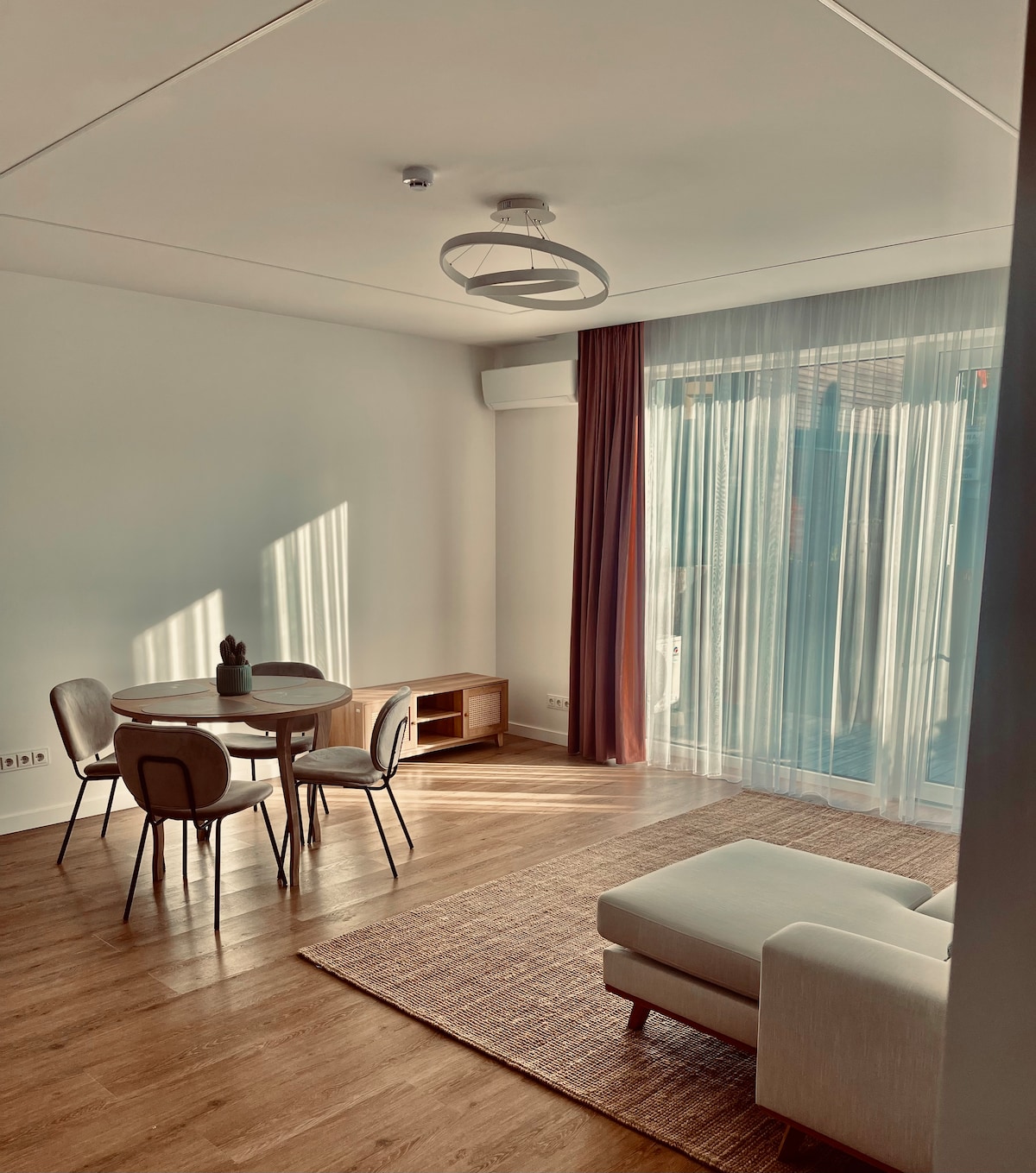 We are very excited to accommodate you in the newly refurbished apartment of Riverra House. It is a complex of 11 modern studios and one-bedroom apartments that offer a memorable and unique experience in the city of Kaunas. Couples, solo travelers, and families with kids - all are welcome in Riverra House! For travelers with a car, we offer a spacious free parking lot on the premises.