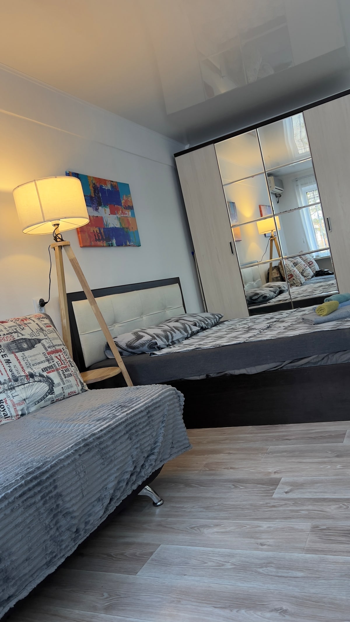 апартаменты с дизайнерским ремонтом с видом на море в центре города. В апартаментах имеется все необходимое для комфортного прибывания и отдыха. Спальня с видом на море, шикарная комфортабельная кровать размера king size. Месторасположение в центре города у моря, в доме на нижних этажах располагаются кофейни, ресторан Мята, супермаркет Дана, пекарня Булка и другое. Рядом имеется тц, магазины, аптеки, рестораны, развлекательный парк, набережная. Дом не новострой. Имеется дипозит 10.000 тенге