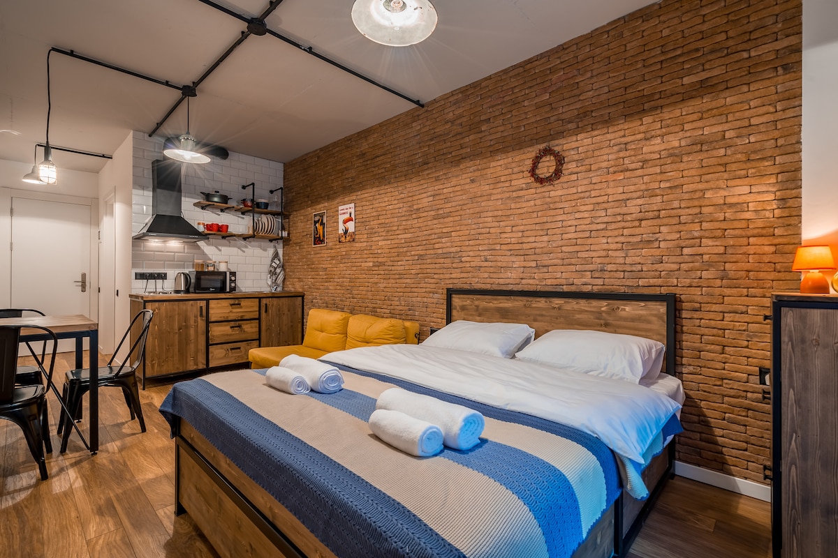 Welcome to the studio in Gudauri, Georgia, at an altitude of 2200 metres! Fresh renovation with wood and stone creates a cosy mountain atmosphere. Perfect lighting, functional areas - living room, bedroom, kitchen with panoramic windows giving natural light. The sunny side offers stunning mountain views. Close to the ski lift, shops and restaurants - ideal for a ski holiday. This studio combines style, comfort and functionality for an unforgettable holiday.