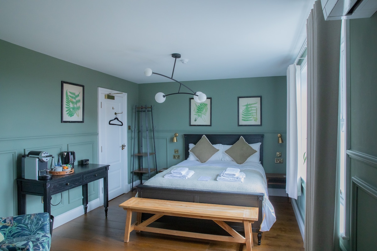 Brand new, Custom designed room above the best pub in town (well we think so) Room 4 - Rich colours, modern furnishings and fittings. Underfloor heating, small fridge and all the expected luxuries in a room. To ensure a good nights rest, the pub garden is closed from 10 PM onwards. Additionally, we offer the convenience of adding drinks to your stay, so you can have something ready upon your arrival. Simply inform us about your preferences, and we will be more than happy to assist you.