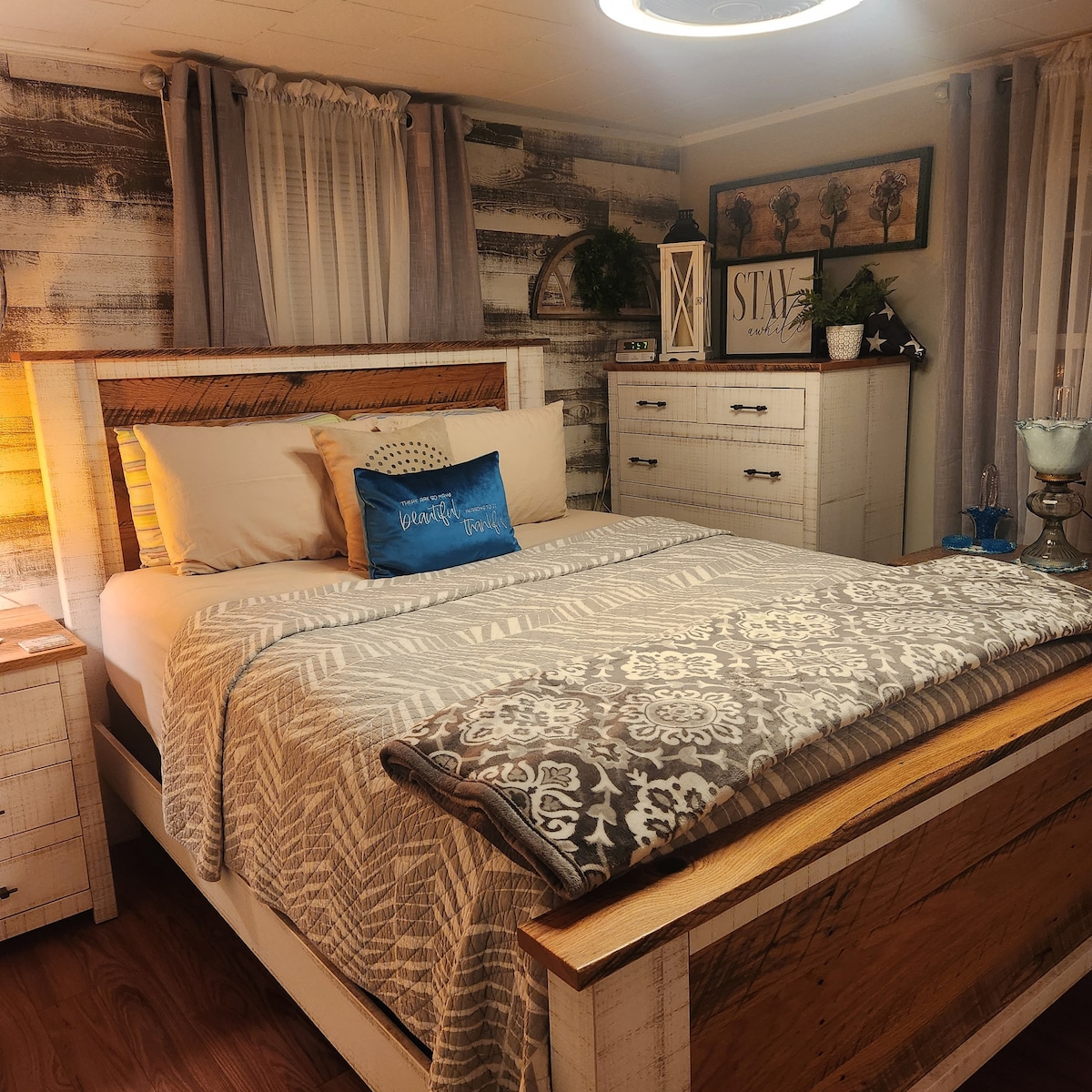 We welcome your fur babies!! Kayaks available! Ice maker! Coffee pot w/coffee & creamer! Adorable, cozy tiny house with two decks & bonfire pit overlooking Lake Cumberland! It is located in Monticello, Ky, in a rural part of the area. It’s about 12 minutes to town. There is very close (driving distance) swimming access, kayaking, boating, boat ramps, fishing & marinas. On a dead end street, so very peaceful. Kayak rental is available for $25. per day/per kayak. Pet fee $50/$75 per stay.