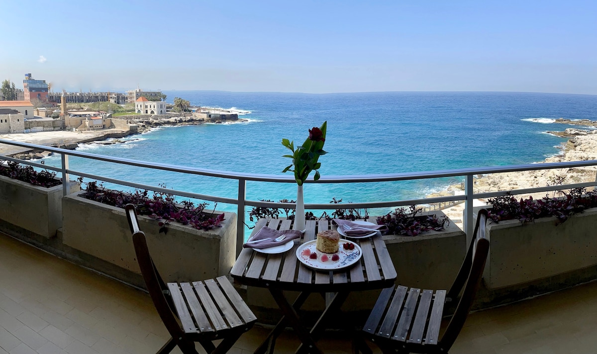 This studio is an unforgettable experience . Admire the great view over the mediterranean sea with awesome sunsets, right from your own terrace, and even from your bed !!!!!! . You will immediately feel at home in this fully equipped apartment. The studio is located in a resort that offers 3 pools (only in summer) and a direct beach access to 2 different beaches, a sandy and a rocky beach. The resort is ideally located on a baie at equal distance between Beirut and Byblos.