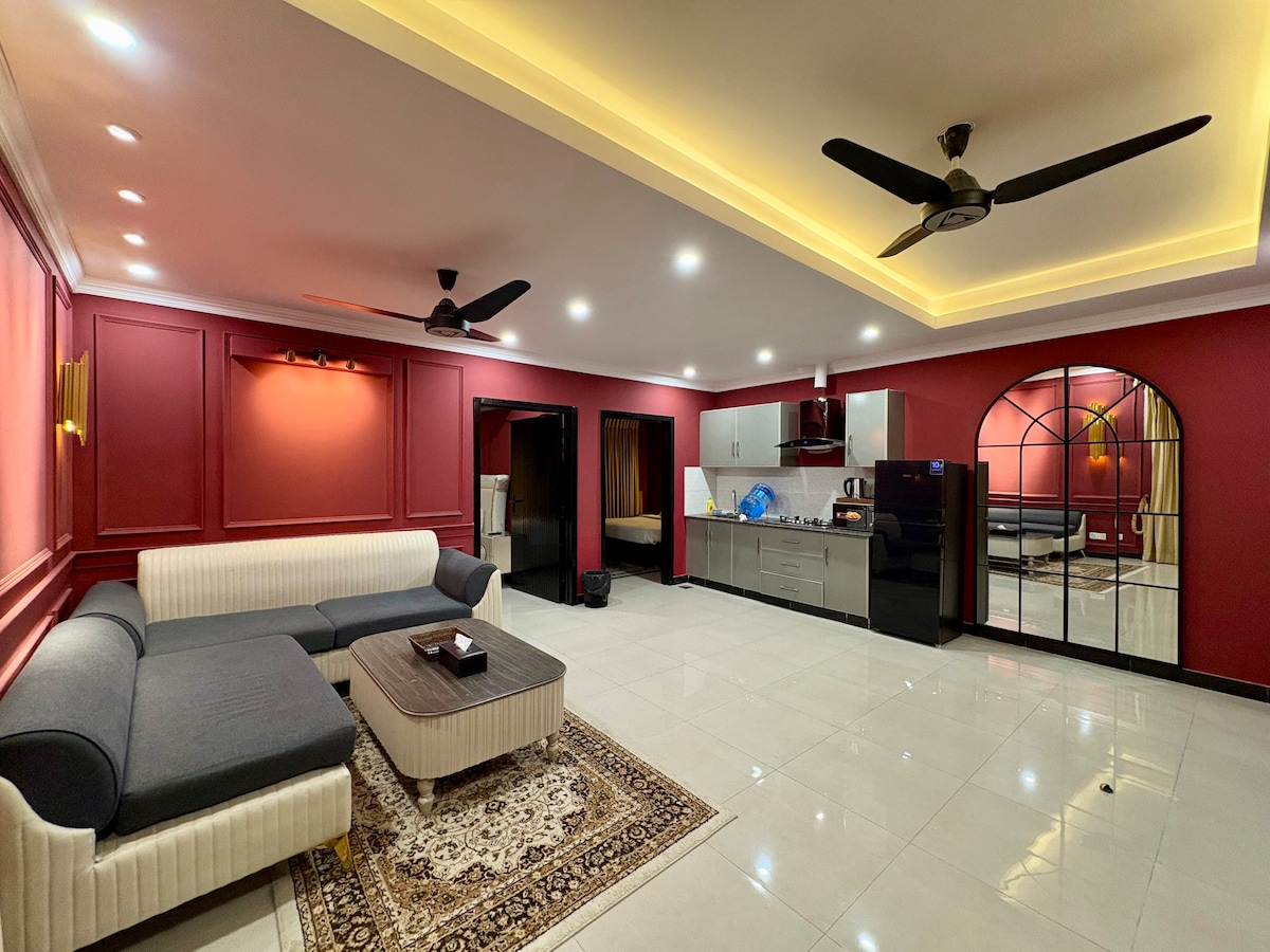 Step inside Flamingo Grand 3 bedroom apartments, the most sophisticated and aesthetically exciting service apartments in Islamabad. Enjoy a safe, secure and stylish experience at this centrally-located place. Whether you are visiting Islamabad for pleasure or for work, we at flamingo assure to provide you with a 5 star experience. Guests also enjoy a dedicated free and secure parking spot, free wifi and experience viewing their favourite tv series on the 65 inch smart led.