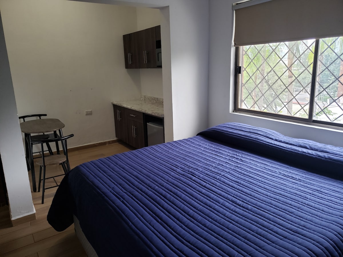 Acogedor Departamento tipo Studio en el sur de Monterrey Ambiente privado con entrada independiente y cochera privada. Un espacio cómodo, limpio y abierto con internet, cocina, área de trabajo, baño completo, Aire Acondicionado. etc. Excelente ubicación cerca de: Tec, Fundidora, Cintermex, estadio BBVA, Novo Sur, Plaza California, Centro, San Pedro, restaurantes, supermercados, cines, farmacias, casas de cambio 1 cuadra OXXO, BBVA, Banorte 2 cuadras de Starbucks 3 cuadras de L. C. Pizza