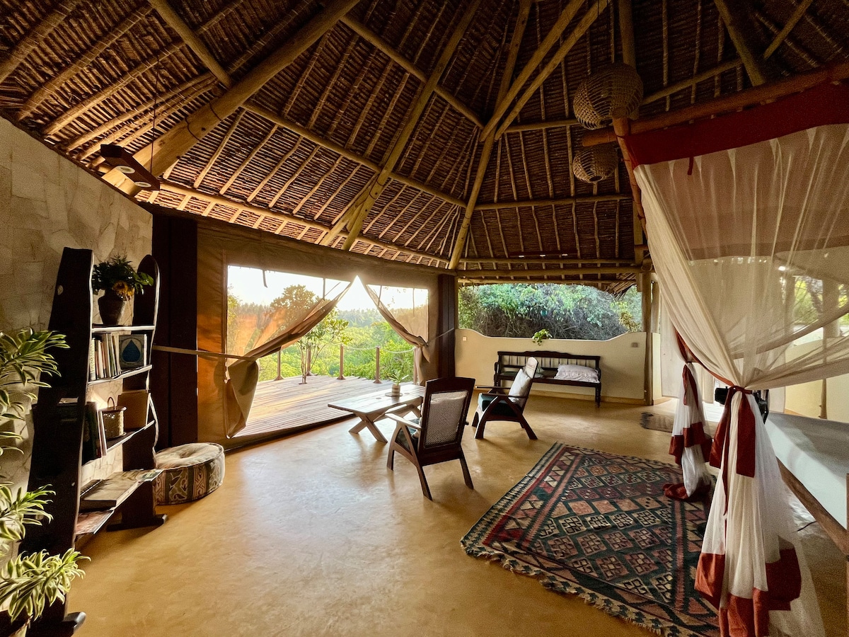 A nature lover’s paradise: a comfortable, self-contained guest house among indigenous trees on a tributary of Takaungu Creek. From the room, a small wooden deck overlooks mangrove forest and the Takaungu creek beyond. Bushbabies by night, monkeys by day, birds at dawn and the mosque at dusk; there is a beautiful rhythm. The space is perfectly kitted: a bedroom, dressing room, kitchen and bathroom. Private but not isolated - Kivukoni School sits next door, with gentle daytime sounds drifting in…