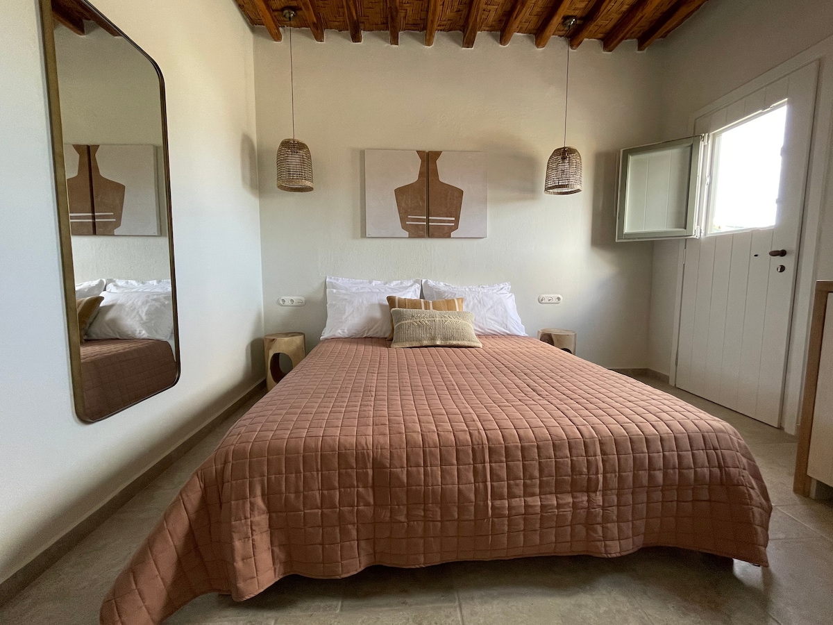Welcome to Kisari Kimolos Chorio Double Room, your serene retreat in the heart of Chorio, Kimolos. Nestled just a few steps from the village center and close to the convenient free public parking, our recently renovated double room offers a blend of traditional Cycladic charm and contemporary comfort. Wake up with a view of the traditional village, Polyaigos and the endless blue sky from the courtyard, fully furnished to enjoy moments of relaxation or a drink. It can accommodate up to 2 persons.