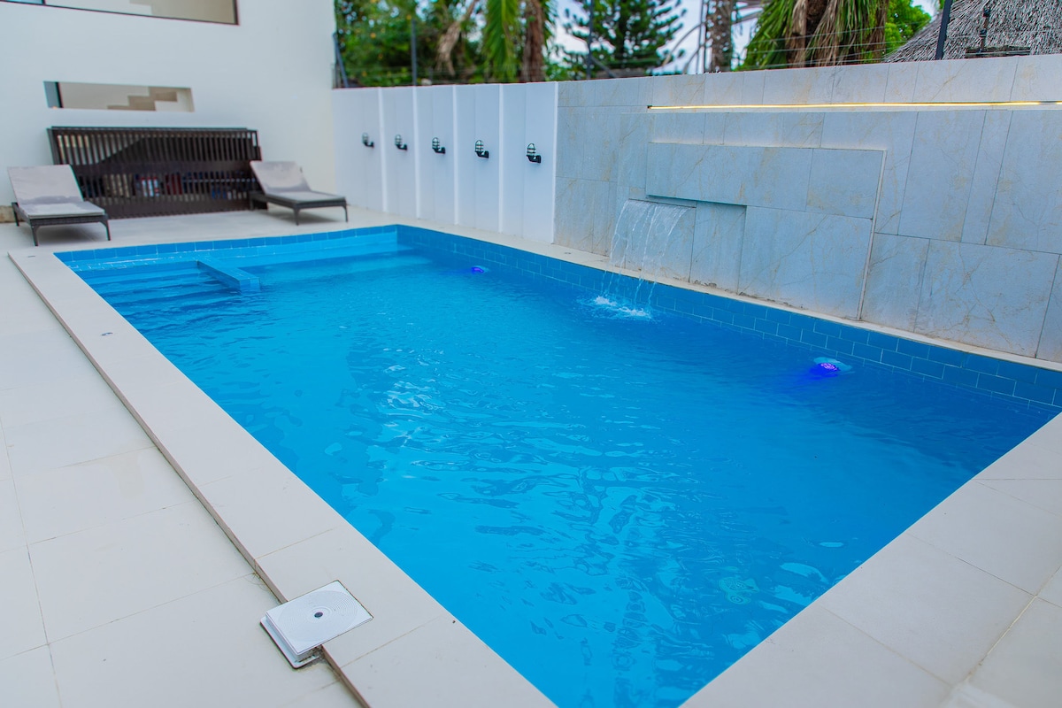 Our private villa is situated in the quiet area of Dar es salaam called Mbezi Beach Relax in the swimming pool with your partner, loved ones or friends. The garden is safe for children to play because the pool is gated off, but always take care please. Welcome in our house near to the beach only 10 minutes away. Three bedrooms and three bathrooms are waiting for you. Also a fully furnished kitchen and a spacious living. Enjoy Netflix in the evening while having snacks from the Airfryer!