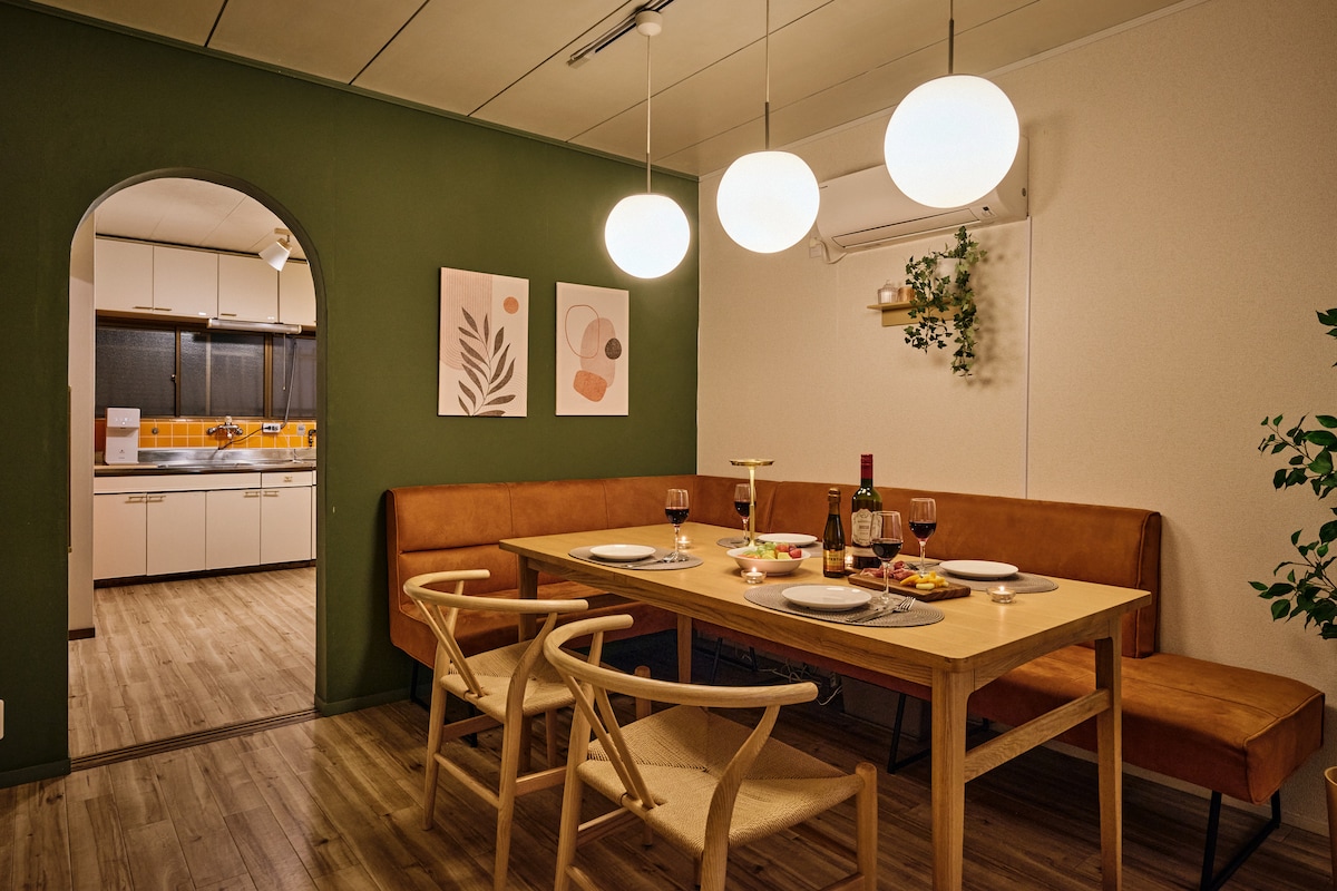 ✨We are offering 30% OFF for opening campaign. ✨ You are lucky to find this room. Don't miss this rare opportunity✨ Welcome to our spacious 2LDK (3 bedroom) room, where you’ll have the entire 75 sqm space to yourself. 100 inch screen is impressive! Please enjoy Japanese art works in this room. Located just a 4-minute walk from nearest station, which is conveniently accessible by four train lines. This room offers the perfect base for exploring not only Osaka but also Kyoto and beyond.