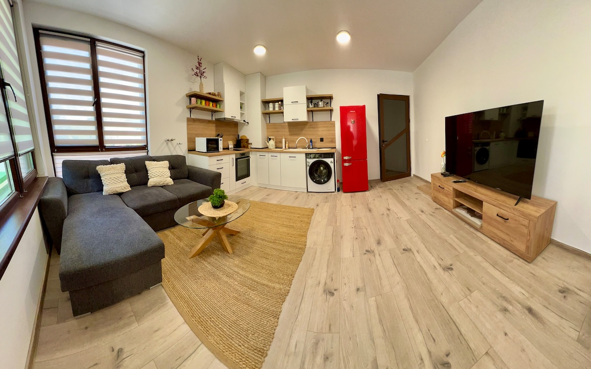 Have fun with the whole family at this cozy and modern place hidden deeply in the nature . It's a brand new, superbly furnished apartment in the city of Shumen, non-smoking. Nestled in a quiet neighborhood, almost at the exit of the city to the Shumen plateau, on the way to the monument "Founders of the Bulgarian State" in a quiet and peaceful area near the pine-tree forest, and at the same time a 10-minute walk from the center of Shumen. We do not extra charge for cleaning.