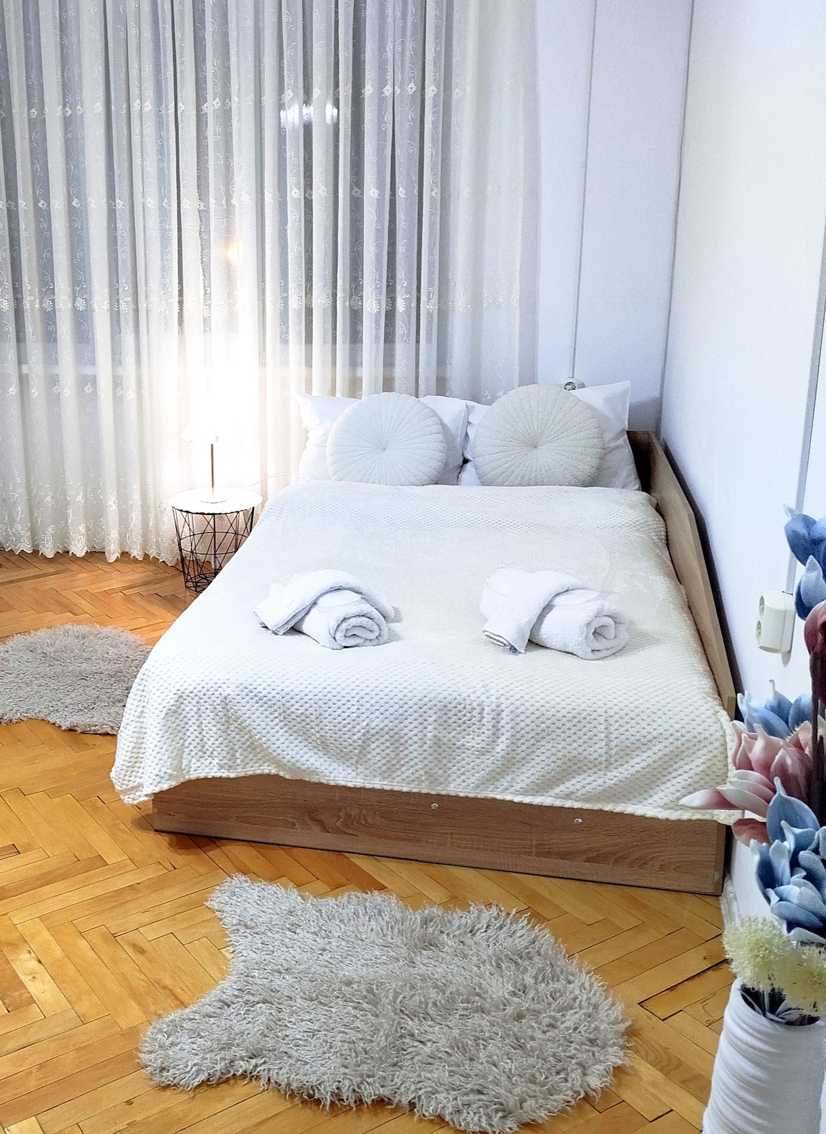 Добре дошли в нашия уютен апартамент в сърцето на Шумен! Насладете се на тишина и спокойствие, само на крачка от Руски паметник, градска градина и на 10 минути пешеходно разстояние от автогара и жп гара. Състои се от две комфортни стаи оборудвани с климатик и телевизор, кухня с всички необходими електроуреди, прибори за хранене и готвене, Wi-Fi и тераса с чудесна гледка към парк. Апартамента идеален за семейства, приятели и пътуване по работа.