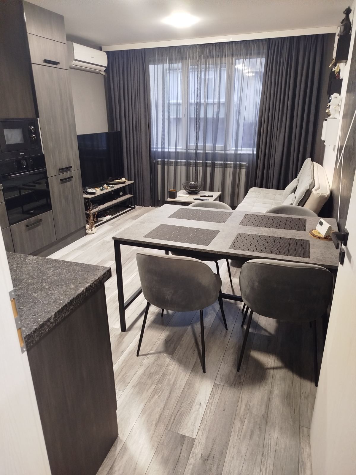 Апартаментьт е идеален за двама възрастни или сам човек, като предлага уютна атмосфера и всички необходими удобства за приятен и комфортен престой. •Пушенето е разрешено само на терасата.🚭 •Не се допускат домашни любимци.🐾 •Без партита и силен шум/музика🎶 след 22:00 ч. - апартаментьт се намира в жилищен район и ценим спокойствието на съседите. Благодарим за разбирането и съдействието! Жилището е напълно обзаведено и предлага всички удобства за приятен престой.