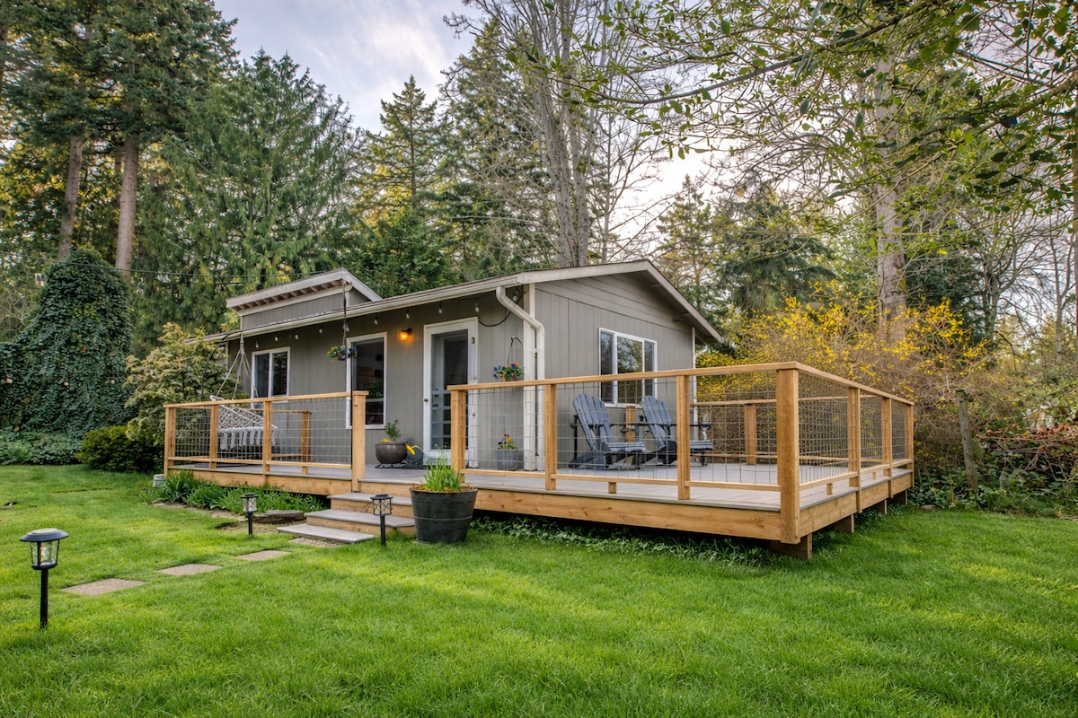 Tucked into a lush rain forest, this cozy and private tiny house is a peaceful retreat for slowing down. Wake to birdsong and filtered light through the towering trees, enjoy coffee or wine outdoors on the deck, grill dinner and gather by the fire pit as stars appear through the forest canopy. A simple, thoughtfully designed base for exploring the port towns and the Olympic Peninsula — or doing nothing at all. That's how we planned it. Small pets welcome. Please check with us before booking.