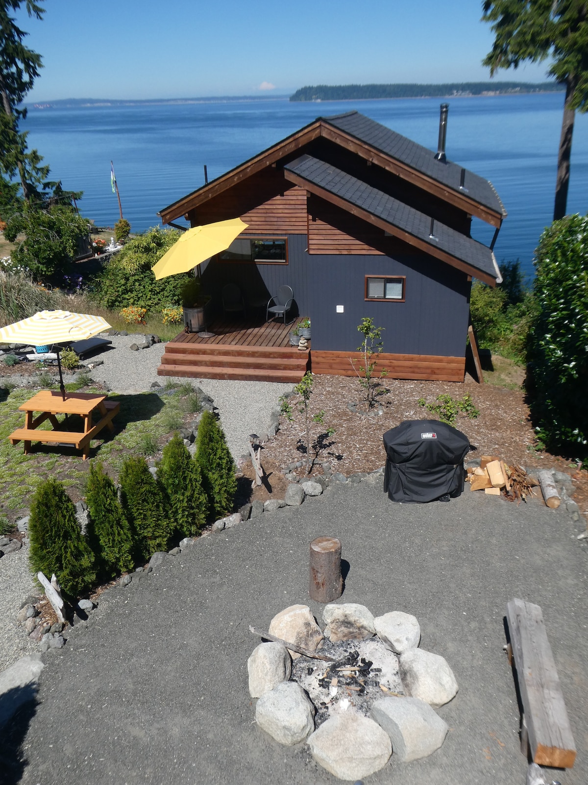 Welcome to Bella Rosa Cottage & Gazebo on the Salish Sea! We are conveniently located 40 min away from Seattle via ferry.The updated 400 sq ft waterfront studio cottage and gazebo have amazing views from Seattle/Rainier to Mt. Baker. See eagles, ferries, cruise ships and you may even see Orcas! Within 3 miles of Kingston & White Horse Golf Course, it offers the perfect couples' getaway to enjoy the Olympic National Park. Two-day min ...2 adults, 1 child & your dog ($100 pet fee).