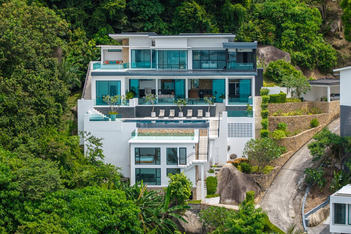 Set in one of the most desirable locations in Choeng Mon, this 5-bedroom Seaview villa is the ultimate in luxury island living. Spread across 3 floors with breathtaking ocean views, it features a 16m infinity pool & cold water outdoorJacuzzi, cinema room, gym, large bar area with pool table, golf simulator room & putting green, and full-time chef. Relax in the new Japanese-style sento spa with hot pool, cold plunge, sauna & massage room – perfect for families, friends, and groups of friends.