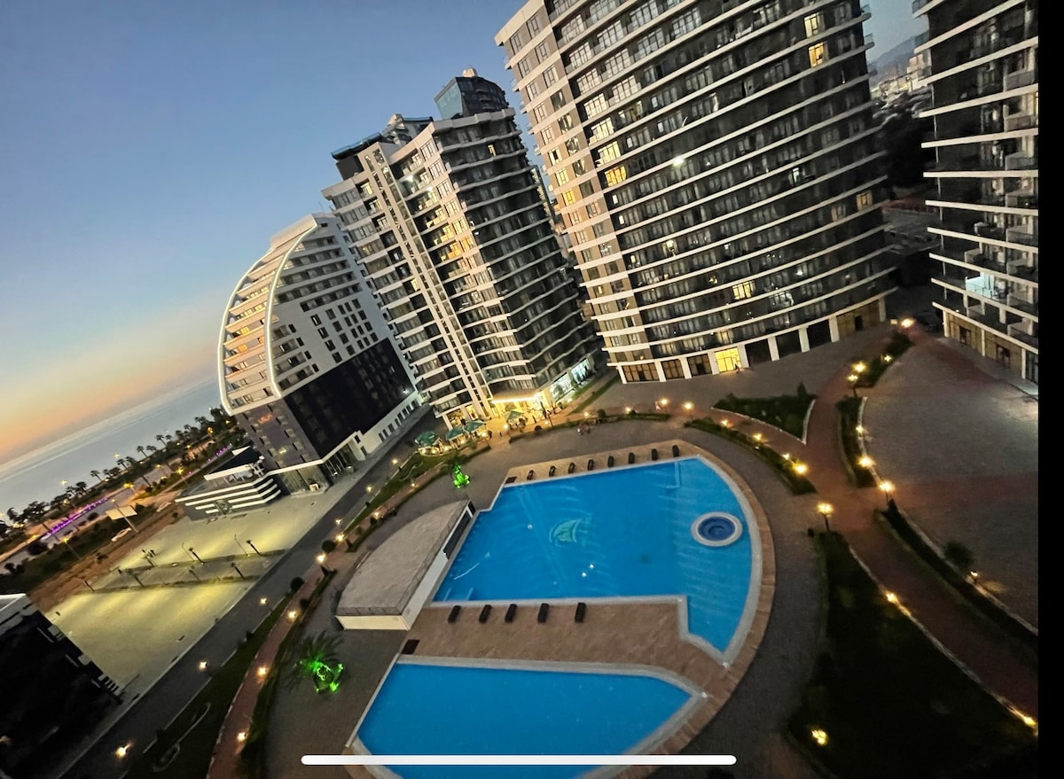 Studio with sea view over looking the dancing fountains, 1 minute walk to Batumi public service hall, 2 minute walk to the nicest McDonald’s building in the world, 5 minutes walk to the beach, 10 minutes drive to the airport. The apartment is air conditioned and has a modern kitchen with all the convenient appliances. The bathroom is spacious and has a bathtub for relaxing baths after long days by the beach. Also, for extra payment you can use gym and swimming pool.