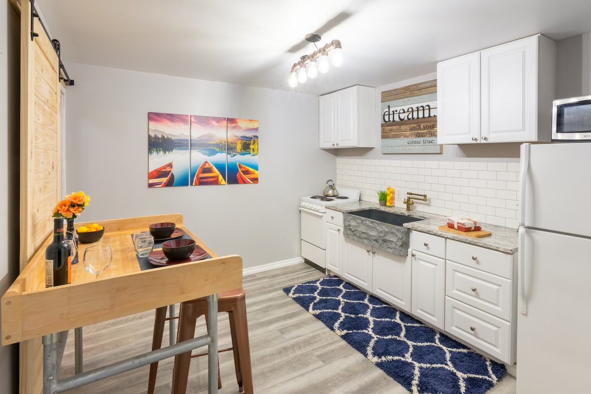 La Casita Centro: Brand new 1 bedroom, 1 bath private guest home complete with a plush King bed, and full kitchen with stainless appliances. This quaint sun-washed casita is ideally located just a few blocks to downtown Coeur d’Alene where you will find fabulous local shopping, craft beer, music, beaches, parks, walking paths/hiking trails, and restaurants. And while you’re here romanticize the small moments there is endless inspiration all around us—take it in and enjoy your stay!