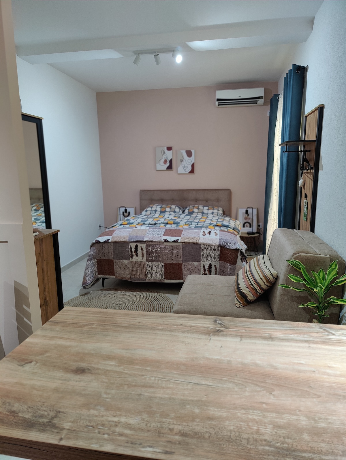 The Cozy Studio with super speed WiFi is equipped with a double bed, bathroom, kitchenette and dinning area. The size of apartment is 23m2 with the 10m2 of terrace and it is situated on the ground floor, 20m from the beach. The beach is equipped with sun loungers they are free of charge for our guests. The parking place is free of charge .If you need good private parking near to as apartment it cost 5 eur per day