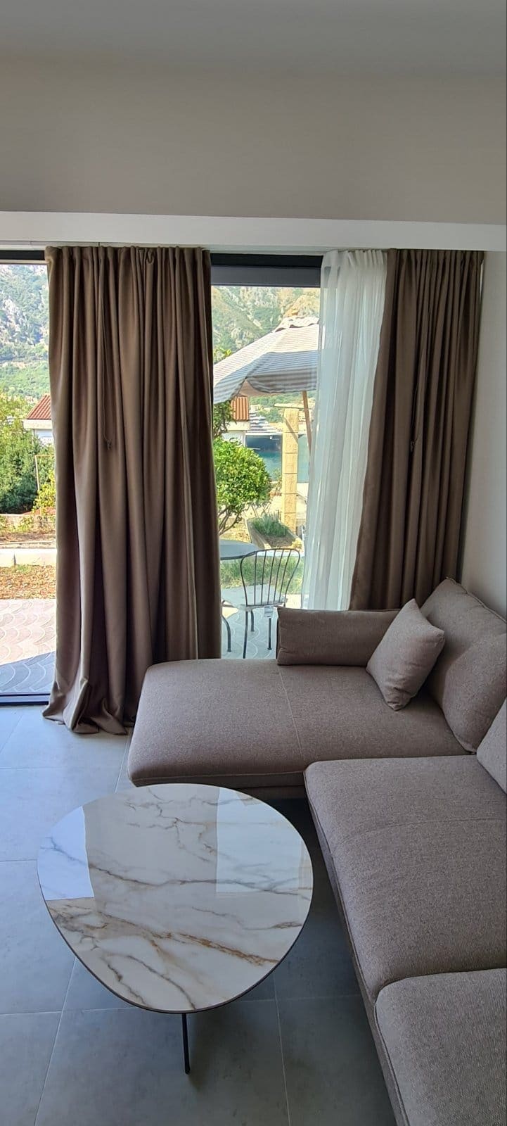 Enjoy a stylish experience at this centrally-located place. Furnished and equipped apartment with brand new high quality furniture/appliances. Located on first floor of a small residential building of 4 apartments in total, only 50m away from the sea and 200m away from Kotor Old Town. One bedroom apartment of 60m2 consists of living room, kitchen and dining area, 1 bedroom, bathroom and hallway. Garden and parking space at disposal.