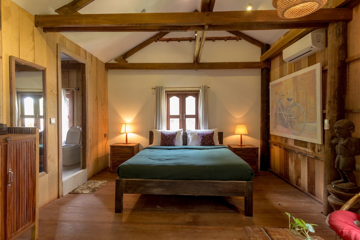 Immerse yourself in Siem Reap's charm at our private house, just steps from the scenic Siem Reap River. Unwind in the spacious bedroom with courtyard views, or cook up in the fully equipped kitchen with a dining table. Relax in the spacious living room with a flat-screen TV, or refresh in the walk-in shower and separate toilet. Step outside to the tranquil garden. Nestled in a peaceful neighborhood, our house is still within walking distance of the city center and just 7km from Angkor Wat.