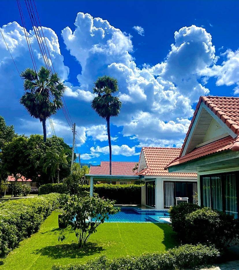Spanish style Villa has 3 bedrooms with ensuite bathrooms, lounge, western style kitchen/dining and laundry room. Private pool, double car port, storage building, sun deck and lovely gardens. Surrounded by coconut and mango plantations and mountaun views and is 1 km from Samroiyot beautiful sandy beach. OTHER INCLUDED FEATURES: Air conditioning, Hot water to all bathrooms and kitchen, Water cooler, Charcoal B.B.Q., hair dryer, Iron, toiletry items. Wifi.