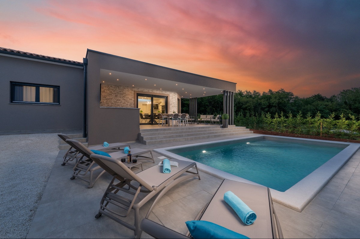 *Youth groups upon request! Villa Tila is located in the heart of Istria, surrounded by green landscapes, it is the perfect choice for a family holiday. This modern villa with a private pool features a unique design in every room, creating a cozy and relaxing atmosphere. With two spacious bedrooms, each with its own bathroom, a fully equipped kitchen, and a large living room, the villa is ideal for a family or a small group of friends.