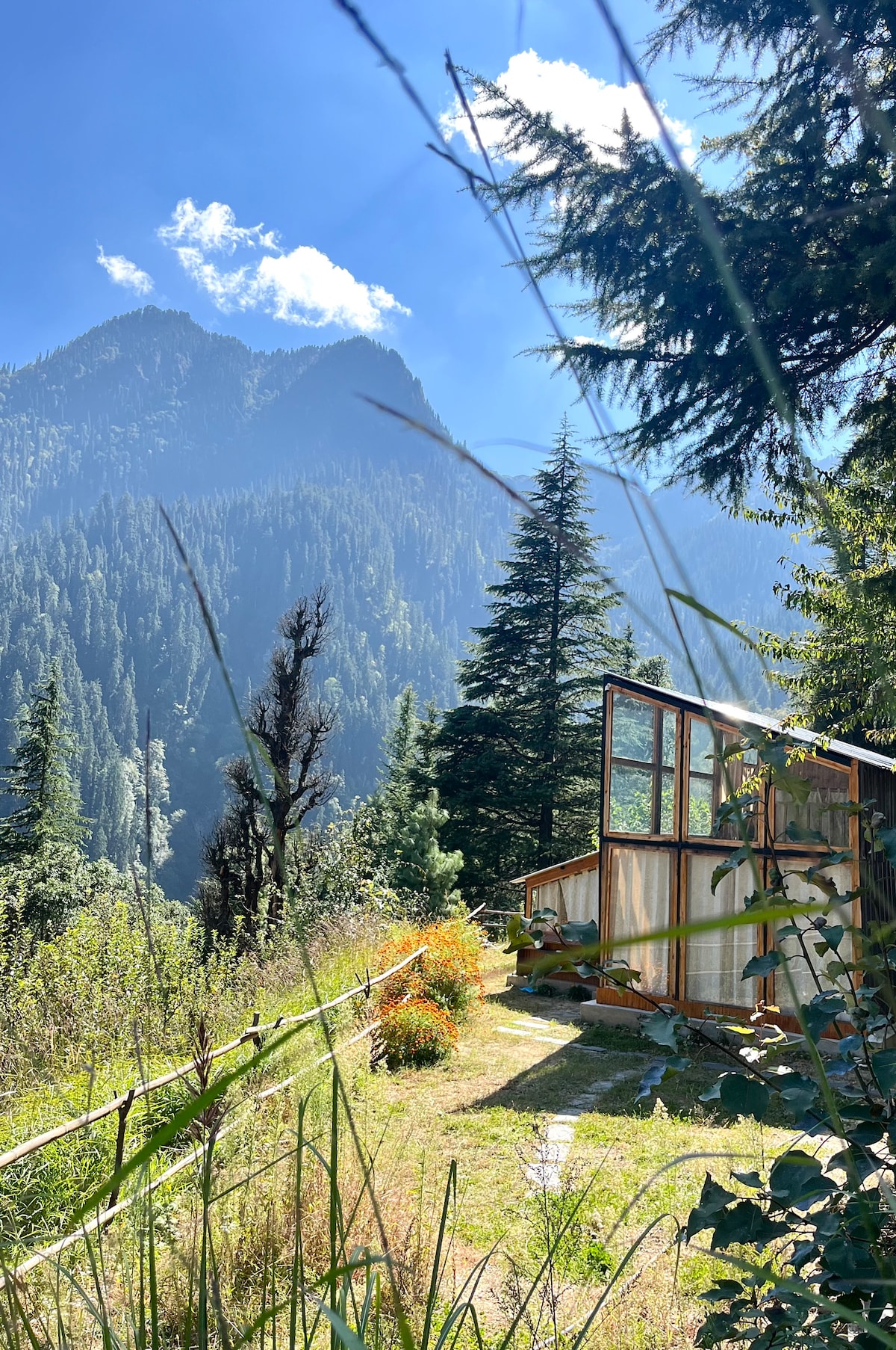 Forget your worries in this quiet and comfortable place in the middle of forest and mountains. Experiences - Take a quick morning stroll through pastures and forest 5 min from the cottage - Crazy view of snow peaks right from your porch or watch clouds floating on a rainy day - Sunbath freely on a cozy mat in the garden space or porch Other nearby treks: Kanyal waterfall, Kharma Valley, Lamadough, Jogini falls (starting points can be reached by car/auto in 15-30 minutes)